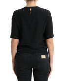 Dolce & Gabbana Black Silk Round Neck Short Sleeve Blouse Top