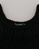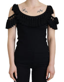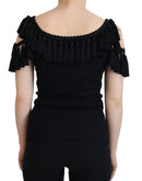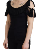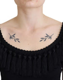 Dolce & Gabbana Black Tank Top Blouse Tassle Cotton Blouse