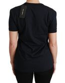 Dolce & Gabbana Blue Amore Patch Crewneck Cotton Top T-shirt