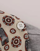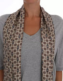 Beige and bordeaux owl print silk scarf with button attachment