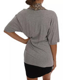 Dolce & Gabbana Gray Cotton Owl Silk Scarf Top T-shirt