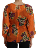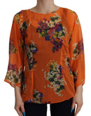 Dolce & Gabbana Orange Floral Print Long Sleeve Blouse