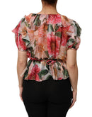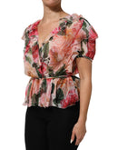 Dolce & Gabbana Pink Camellias Printed Silk V-neck Blouse Top