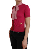 Dolce & Gabbana Pink Short Sleeves Pullover Ascot Collar Top