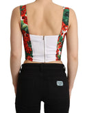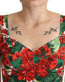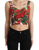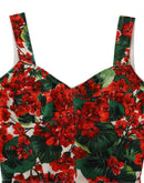 Dolce & Gabbana Red Geranium Print Viscose Sweetheart Cropped Top