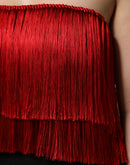 Dolce & Gabbana Red Silk Strapless Fringe Crop Tube Top