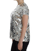 Dolce & Gabbana Silver Sequined Crewneck Blouse T-shirt Top