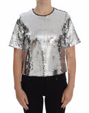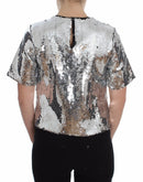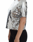 Dolce & Gabbana Silver Sequined Crewneck Blouse T-shirt Top