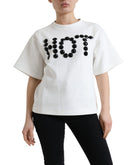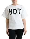 Dolce & Gabbana T-shirt White Cotton Stretch Black HOT Crystal