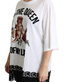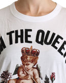 Dolce & Gabbana White Angel Print Cotton Round Neck Shirt Tops