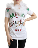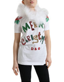 Dolce & Gabbana White Cotton Christmas Sequin Fur T-shirt