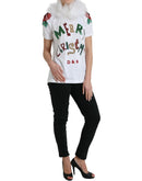 Dolce & Gabbana White Cotton Christmas Sequin Fur T-shirt