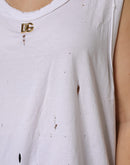 Dolce & Gabbana White Cotton Sleeveless Round Neck Tank Top
