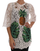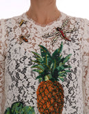 Dolce & Gabbana White Crystal Embellished Lace Blouse