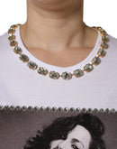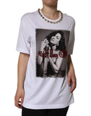 Dolce & Gabbana White Crystal Neckline Embellished Printed T-shirt