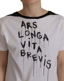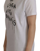 Dolce & Gabbana White Slogan Print Round Neck Cotton T-shirt