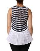 top blends modern minimalism with refined craftsmanship. Featuring a chic white and black knitted design, it offers a soft texture and a flattering sleeveless silhouette. Finished with a classic round neckline, it’s perfect for creating effortlessly stylish and contemporary looks.