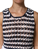 Dondup White Black Knitted Round Neck Sleeveless Tank Top