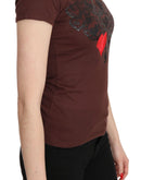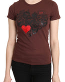Exte Brown Hearts Printed Round Neck T-shirt Top
