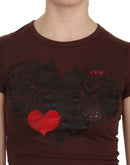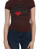 Exte Brown Hearts Short Sleeve Casual T-shirt Top