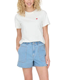 The JDYPISA S/S PRINT TOP JRS NOOS short-sleeved t-shirt by Jacqueline de Yong is the perfect choice for a casual and feminine style. Made from 100% cotton, this t-shirt offers comfort and breathability throughout the day. The regular fit flatters every silhouette, while the minimalist design with a small embroidered heart on the chest adds a romantic and distinctive touch. The classic crew neck and short sleeves make it versatile and easy to pair with jeans, trousers, or skirts, ideal for spring-summer and any casual occasion.