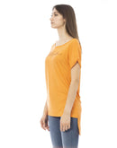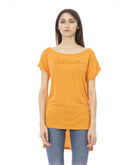 Embrace the audacity of style with Just Cavalli’s latest creation. This resplendent orange tee is more than just a top; it’s a statement. Adorned with a shimmering rhinestone logo, it announces your presence with sparkling clarity. The comfort of short sleeves meets the elegance of a crew neck, crafting a quintessential piece for the trendsetter’s wardrobe. Make no mistake, this is the tee that speaks volumes of your bold fashion choices without uttering a word.
