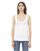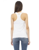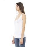 Step into the spotlight with the Just Cavalli long tank top – a true epitome of bold sophistication. This chic, white piece boasts a round neck silhouette that flatters, while the front logo sparkles with rhinestone embellishments, ensuring you shimmer with every move. Turn around to reveal the iconic back logo, an ode to the brand’s trendy, high-fashion essence. Perfect for those who dare to stand out and embrace their luxurious side.