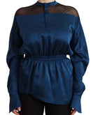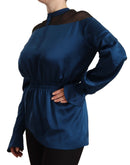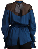 Masha Ma Blue Silk Long Sleeves Elastic Waist Top Blouse