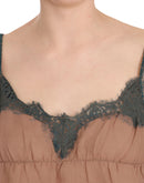 PINK MEMORIES Brown Lace Spaghetti Strap Tank Top Blouse