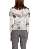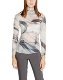 This long-sleeved women’s t-shirt by Rinascimento, model CFC0119862003, is a sophisticated and contemporary style choice. Made from 100% polyester, it offers a lightweight and form-fitting feel, ideal for enhancing the feminine silhouette. The semi-transparent fabric and artistic print add a modern and refined touch, perfect for both casual looks and more elegant occasions. The high neckline brings an extra touch of elegance, while the slightly fitted cut flatters the figure. This versatile garment can be easily paired with tailored trousers or skirts for always fashionable and original outfits.