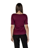The Street One LANEA women’s short-sleeved t-shirt is perfect for those seeking a casual yet refined look. This fitted model enhances the feminine silhouette, while the slightly boat neckline adds a modern and elegant touch. Made from a blend of 50% cotton and 50% modal, it offers a soft feel against the skin and excellent breathability throughout the day. The mid-length sleeves are ideal for transitional seasons or for layering under blazers and cardigans. Suitable for leisure, office wear, or a simple yet sophisticated outfit.