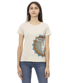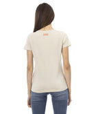 Elevate your wardrobe with the effortless sophistication of Trussardi Action’s latest creation. This short-sleeve T-shirt, featuring a sleek round neck and an eye-catching front print, embodies contemporary style with an edge. Crafted from a sumptuously soft blend of cotton and viscose, its premium comfort matches its high-fashion appeal. Perfect for fashion-forward individuals yearning to make a statement. Make this exquisite beige top your go-to piece for an undeniable chic look.