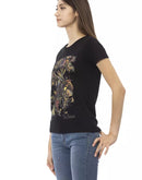 Dare to embody the bold essence of luxury with Trussardi Action’s exquisite short sleeve T-shirt. Cut with a flattering round neck, this chic top boasts a striking front print that demands attention, making it a must-have for trendsetters who covet an edge in their wardrobe. Crafted with care, this piece blends the comfort of cotton with the smooth drape of viscose to ensure a magnificent fit and feel.