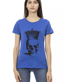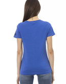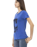 Indulge in the bold elegance of ‘Trussardi Action’ with our latest Short Sleeve T-shirt. This item exudes a trendy disposition with its striking front print, enveloped in a serene blue hue that captures the gaze. Crafted from a sumptuous blend of cotton and viscose, it promises both comfort and style. Perfect for fashion-forward women ready to make a statement. Elevate your casual ensemble with this chic round neck tee.