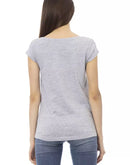 Elevate your everyday style with the chic ‘Trussardi Action’ short sleeve T-shirt. Boasting a sleek gray hue, this top is more than a wardrobe staple; it’s a statement. The round neck provides classic comfort, while the front print adds a dash of contemporary flair. Crafted from a premium blend of cotton and viscose, it ensures breathability and ease, signaling sophistication with every wear. Step out with confidence and turn heads with Trussardi Action’s blend of elegance and edge.