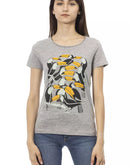 Elevate your casualwear with the sleek Trussardi Action Short Sleeve T-Shirt. With a bold front print that exudes confidence, this round-neck tee is a testament to the brand’s commitment to refined style and quality. Crafted from the finest blend of cotton and viscose, this versatile gray t-shirt promises comfort and durability, while making a trendy statement in your everyday wardrobe. Perfect for the fashion-forward woman on the go!