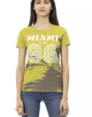 Revitalize your wardrobe with the unequivocally chic Trussardi Action T-shirt. Its short sleeves and classic round neck carve an elegant silhouette, while the front print infuses your look with a dash of contemporary flair. Crafted with the utmost quality, the fusion of cotton and viscose ensures both comfort and style—truly an exclusive piece radiating with trendsetting energy.