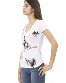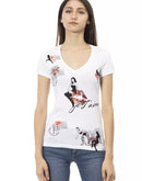 Unleash the epitome of modern chic with Trussardi Action’s white V-neck T-shirt, an emblem of effortless sophistication and refined taste. Tailored to elevate your style quotient, this short sleeve tee showcases a dynamic front print, marrying casual comfort with bold fashion. Perfect for a statement-making appearance, this Trussardi Action piece is a testament to the blend of functionality and high-end fashion sensibilities.