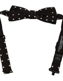 Dolce & Gabbana Black White Polka Dot Silk Adjustable Neck Papillon Bow Tie