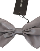 Dolce & Gabbana Bow Tie Men Silver Gray Silk Adjustable Neck Papillon