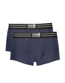 Infuse your everyday essentials with Italian flair courtesy of Cavalli Class. These bi-pack boxer briefs are the epitome of comfort meets style, featuring a snug elastic waistband emblazoned with the iconic Cavalli Class logo. Crafted from a sumptuous blend of 95% cotton and 5% elastane, they offer the perfect stretch for all-day ease. Elevate your underwear collection with these designer staples in a striking blue hue.