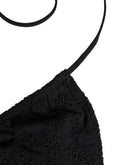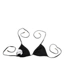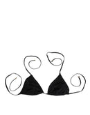 Gorgeous brand new, 100% Authentic Dolce & Gabbana black triangle bikini top, crafted with delicate embroidered details for a chic and stylish look. Made in Italy, this piece features adjustable tie straps for a customized fit, perfect for a sophisticated beach or poolside style.