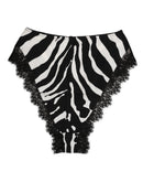 Dolce & Gabbana Black Silk Zebra Print Lace High Waist Underwear