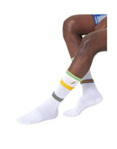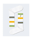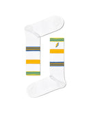 Discover the Happy Socks COLORS CUFF THIN CREW SOCK ATCCF29 women’s socks, perfect for adding a touch of style and vibrancy to your everyday look. Crafted from a high-quality blend of 75% cotton, 23% polyamide, and 2% elastane, these socks ensure comfort, breathability, and a snug fit that adapts perfectly to your foot. The design features a thin ribbed texture with a colorful striped elastic cuff and a small lightning bolt embroidery, adding a unique and modern twist. Ideal for all seasons, they pair effortlessly with both casual and sporty outfits, offering a blend of comfort and personality to elevate any ensemble.