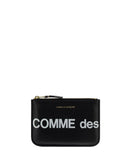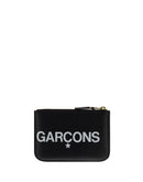 Calfskin Coin Purse by Comme des Garçons, contrasting printed logo on front following on back, engraved gold logo on front, zipper closure with one internal compartment.