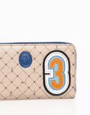 Exude sophistication with this Trussardi Zip Wallet, masterfully crafted in smooth crepe leather that speaks to the connoisseur of luxury. The wallet features a sleek, numeric patch and contrasting profiles that set a bold tone. A nod to vintage glamour, the all-over 70s print injects a dash of retro chic, while the iconic Trussardi logo proudly applied on the front showcases your taste for revered brands. Perfectly sized at 20 x 10 x 2 cm, this wallet slips into your daily ensemble with grace and ease.