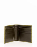 Elevate your accessory game with the unmistakable flair of this Trussardi Monogram Wallet, expertly crafted in crespo leather that boasts a refined grain texture. This quintessential piece opens to reveal practical card compartments, infusing daily essentials with a touch of ’70s inspired print. Adorned with the iconic Trussardi logo proudly displayed on the front, this wallet’s dimensions are crafted to perfection for the modern man. Dare to standout with this bold statement in elegant green.