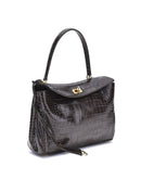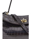 The Rodeo Shoulder Bag in crocodile-print leather by Balenciaga features a top handle for a comfortable and elegant grip. The front closure is equipped with a flap and turn lock, adding a distinctive and functional detail. Key ring detail applied to the top handle. The removable shoulder strap is secured with snap hooks, allowing it to be carried both on the shoulder and by hand. Inside, the bag offers a single internal compartment, ideal for organizing essentials. Additionally, there are metal feet at the base of the bag, to protect it and keep it in place.