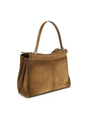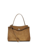 The Medium Rodeo Bag by Balenciaga blends sophistication and practicality with its combination of waxed suede calfskin and smooth leather. It features a top handle and a detachable shoulder strap for versatile carry.Functional details include a spacious front pocket, two flat back pockets, and an interior zip pocket. The turn-lock closure, removable keychain with double spiral ring, and antique silver hardware add signature character.