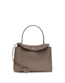Balenciaga’s Rodeo Leather Shoulder Bag features a top handle for a comfortable and stylish grip. The front closure features a flap and swivel, adding a distinctive and functional detail. Applied keychain detail on the top handle. The removable shoulder strap is attached by snap hooks, allowing it to be carried either on the shoulder or by hand. Inside, the bag offers single interior compartment, ideal for organizing essentials. In addition, there are metal feet at the base of the bag to protect it and keep it in place.